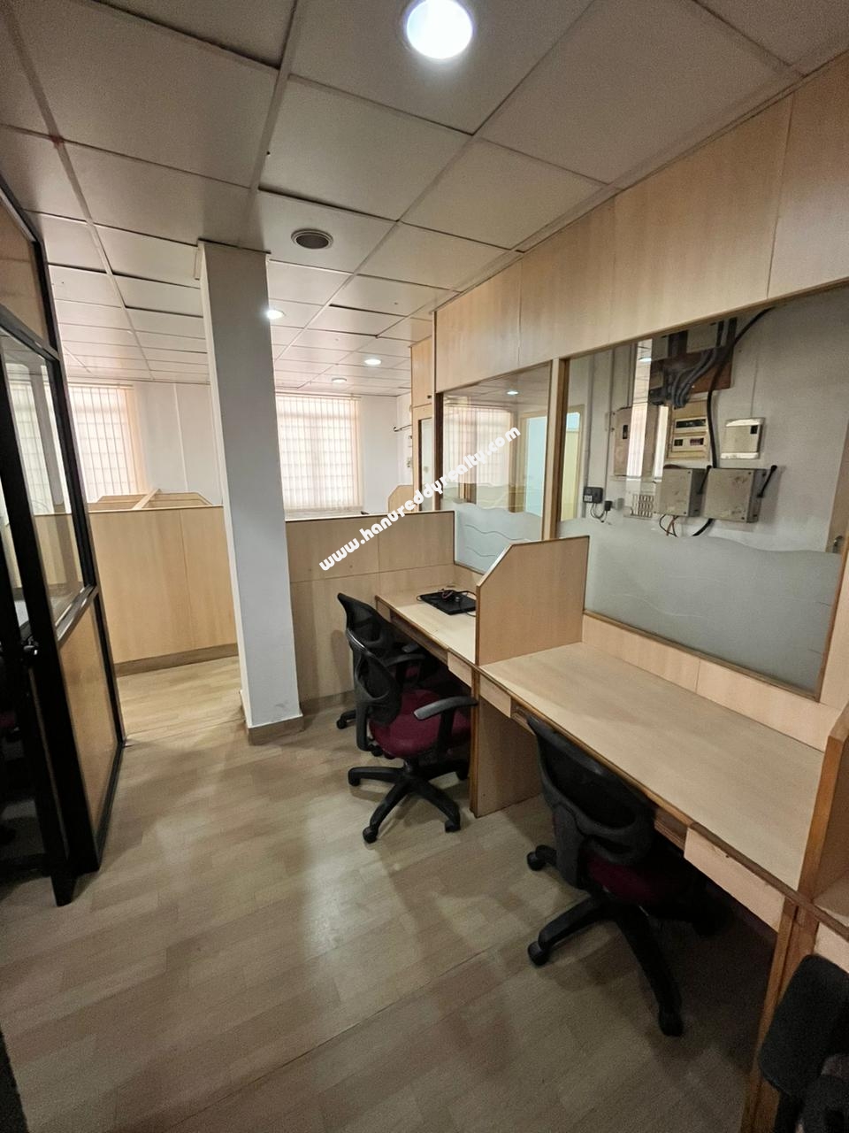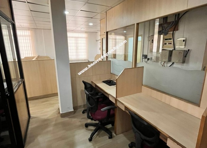 | Property Description: Semifurnished office space. On main road, centrally located. • 16 work stations with 2 cabins • ?1 studio space (convertible) • Dinning area with 2 rooms and one wash basin area • 2 fully equipped bathrooms • ?8 ACs with 10hp generator • ?2 car parking • ?Additional bike parking (Brokerage at one month rental value plus Gst) |