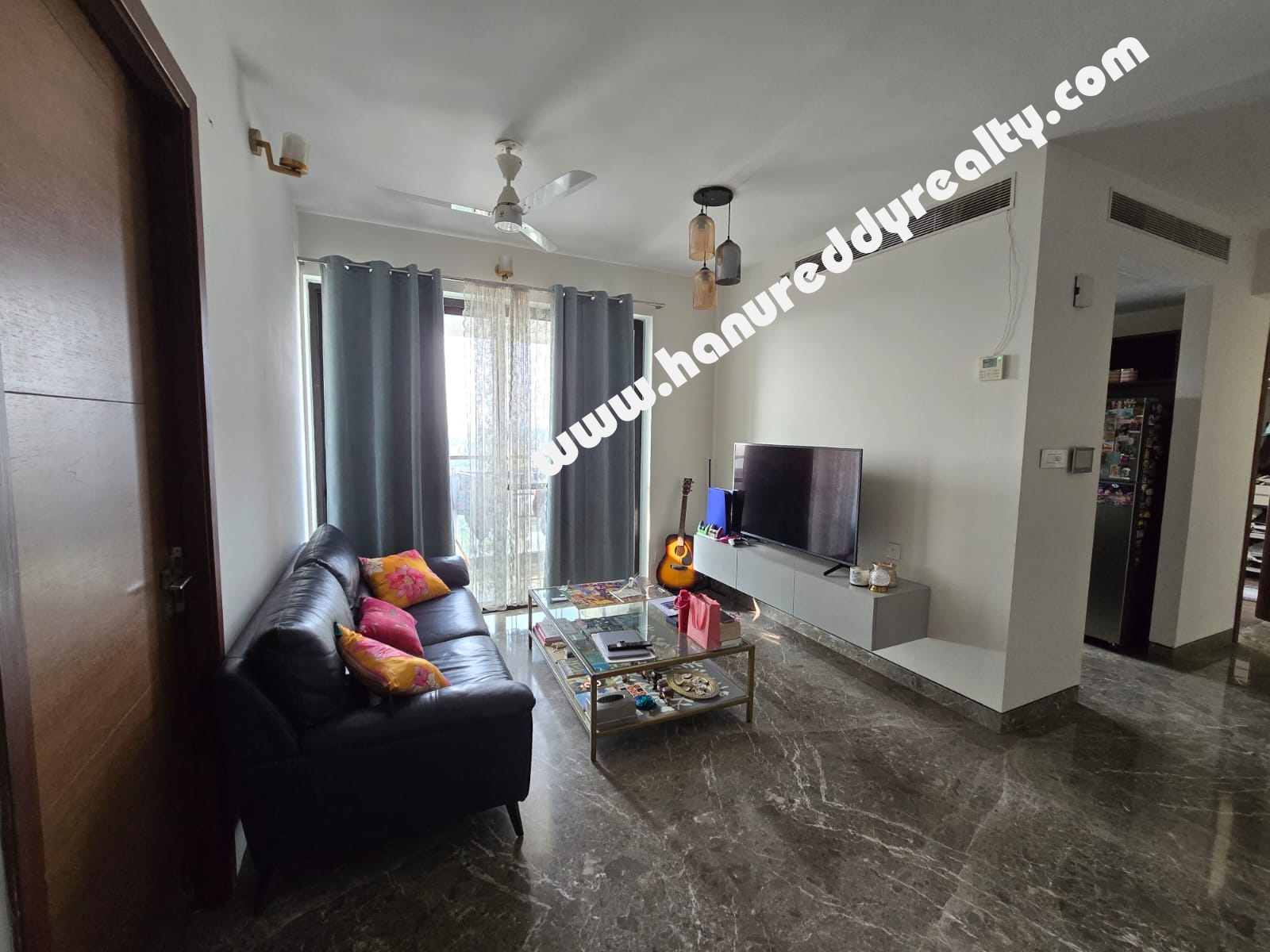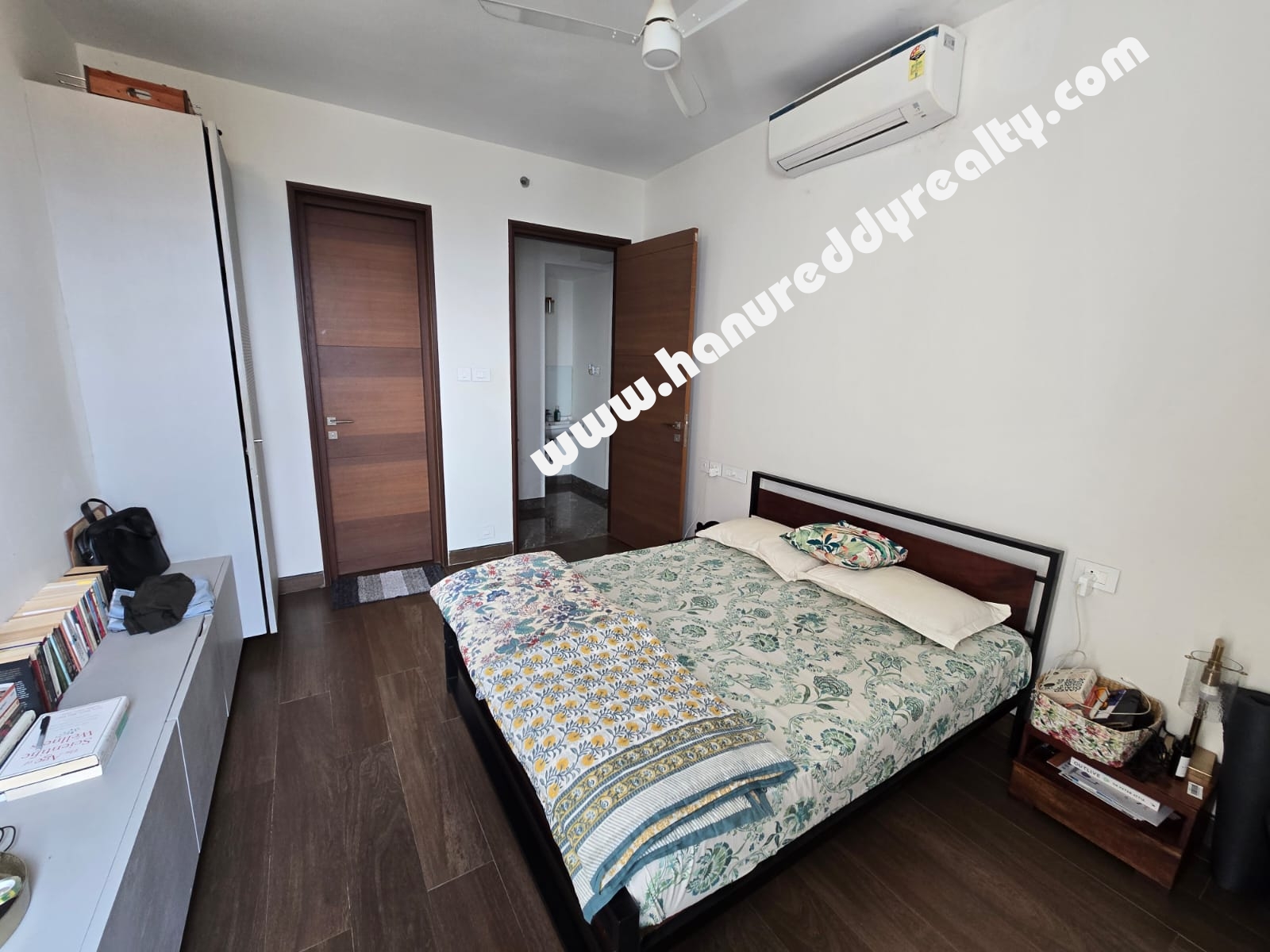 | Property Description: 2 BHK apartment for rent at Clover By The River, Kotturpuram. Built-up area is 1313 sq.ft. Includes 2 bedrooms with built-in cabinets and cupboards. Air conditioners, fans, and lights are provided. The apartment offers a Kottur Garden skyline view and includes 2 car parking spaces. |