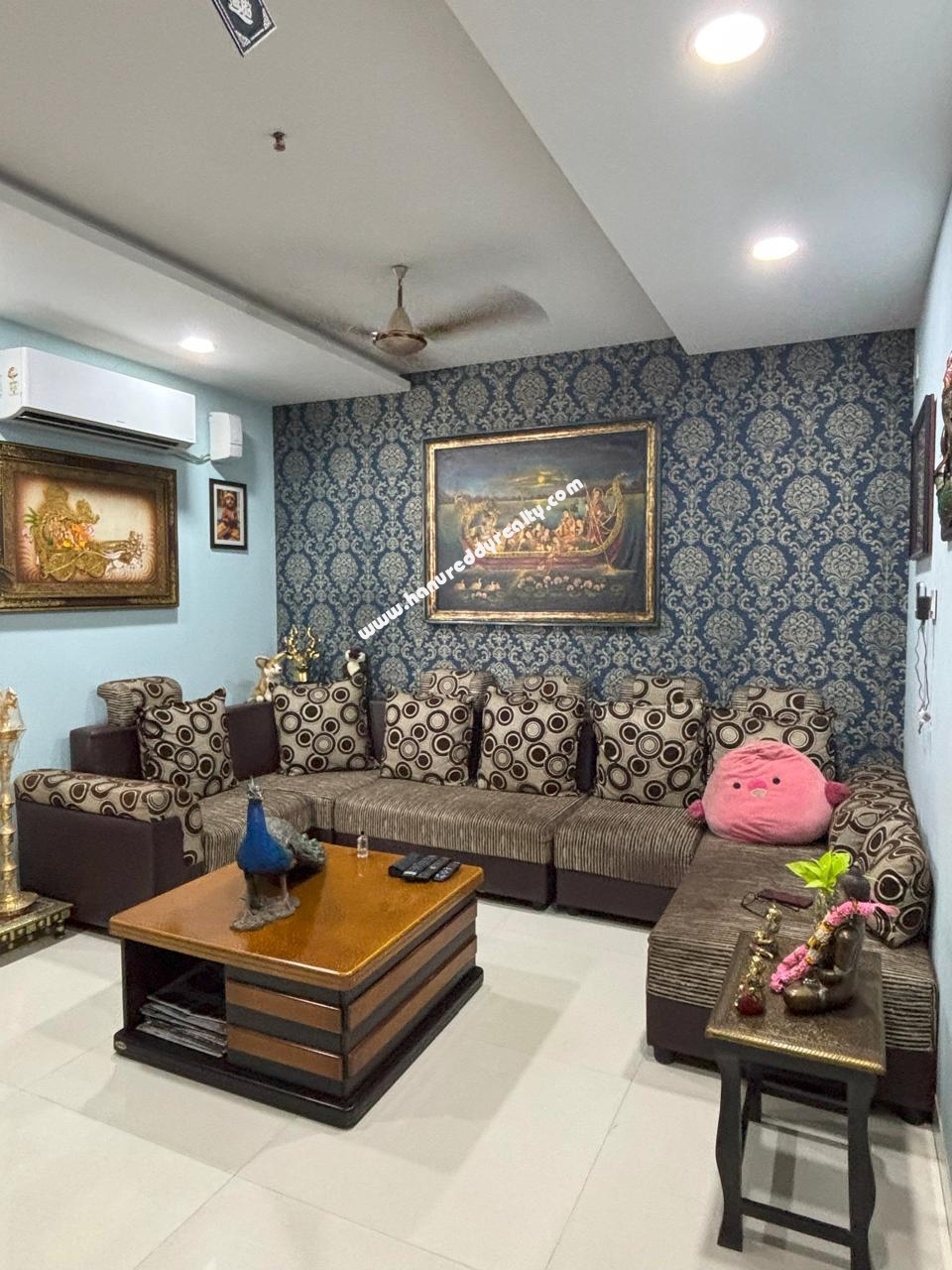 Fully furnished and well maintained 3 BHK flat for resale. The flat is 6 years old but in new condition. It has good interiors with 3 ACs and some furniture. It is a freehold property with clear title documents. The flat has major amenities including gym, swimming pool, 2 car parking, children’s play area, and other basic amenities.